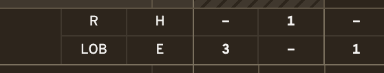 Total runs, hits, errors, and men left on base are displayed in the footer row of each inning, laid out in quadrants (just like I do in my scorebook!).